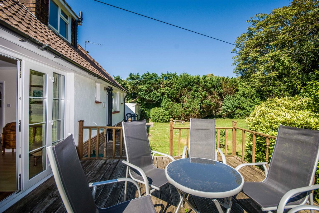A unique opportunity to holiday in this detached three bedroomed chalet style house which is ideally situated for a quiet, relaxing holiday. This property overlooks the sea with extensive views of the Solent and the Needles from the front of the house, the beach at Totland Bay being just a few minutes walk. The village of Freshwater is just 5 minutes away with supermarkets, swimming pool & shops. Walking to the Alum Bay across Headon Warren is close by.