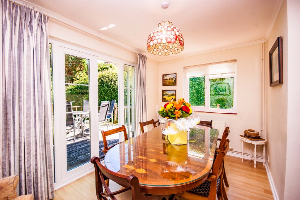 - DINING ROOM – With table & chairs, bookcase. French doors to patio area and onto large secluded garden