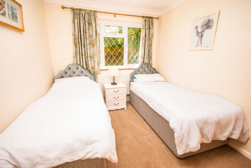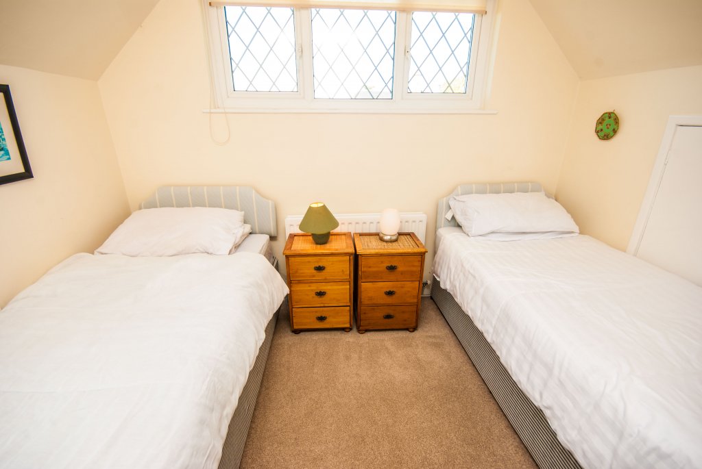 - BEDROOM 2 – Twin beds, bedside table, wardrobe.